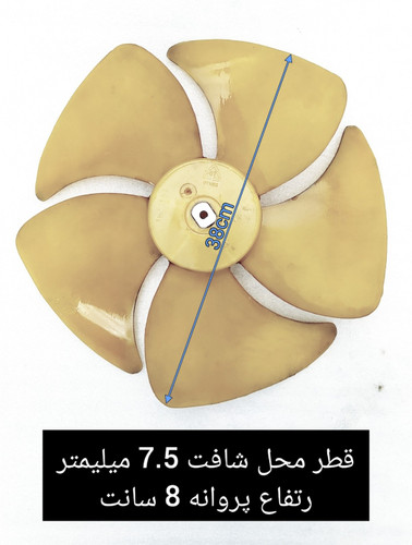 پروانه فن کندانسور کولر اسپلیت قطر 38 سانت قطر محل شافت 7.5 میلیمتر الجی 36 هزارناموجود