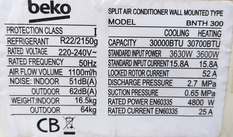 پنل کولرگازی اسپلیت 30 هزار برند بکو اصل استوک