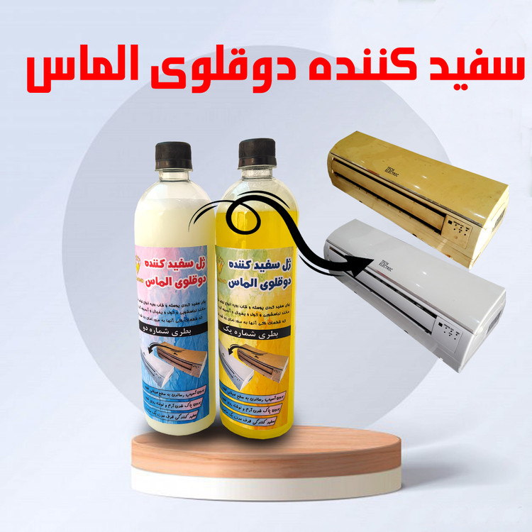 حجم هر بطری 900 سی سی ، محلول و ژل دوقلوی سفید کننده قطعات پلاستیکی و لاکی لوازم برقی و لوازم خانگی برند الماس با قدرت سفید کنندگی بسیار بالا در زمانی بسیار کوتاه و تاثیر فوق العاده چشم گیر