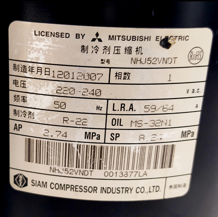 کمپرسور اسکرول کولر گازی ۳۲ هزار میتسوبیشی مدل NHJ52VNDT کارکرده