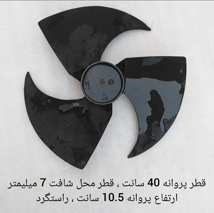 راستگرد ، مناسب برای کولرهای اسپلیت 12 هزار ، قطر 40 سانت ، ارتفاع پروانه 10.5 سانت ، قطر محل شافت 7 میلیمتر ،