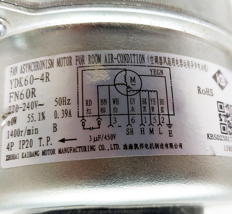 موتور فن اواپراتور کولر گازی اسپلیت 60 وات مدل YDK60-4R گری 36 هزار استوک