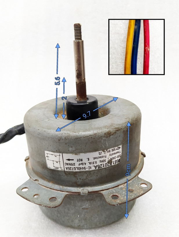 موتور فن کندانسور کولر گازی اسپلیت مدل 4681A20126A تک دور قطر شافت 8 میل