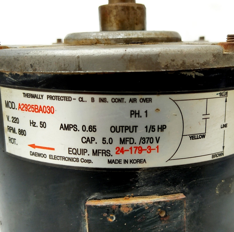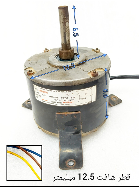 موتور فن کندانسور کولر گازی اسپلیت کریر مصری قدرت 1/5 اسب مدل A2925BA030 قطر شافت 12.5 میلیمتر