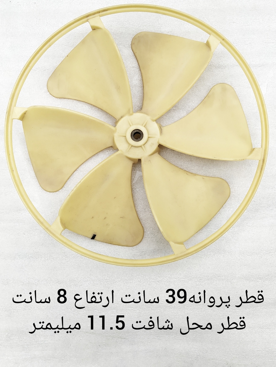 پروانه فن کندانسور کولر گازی پنجره ای قطر 39 سانت ارتفاع 8 سانت قطر محل شافت 11.5 استوک