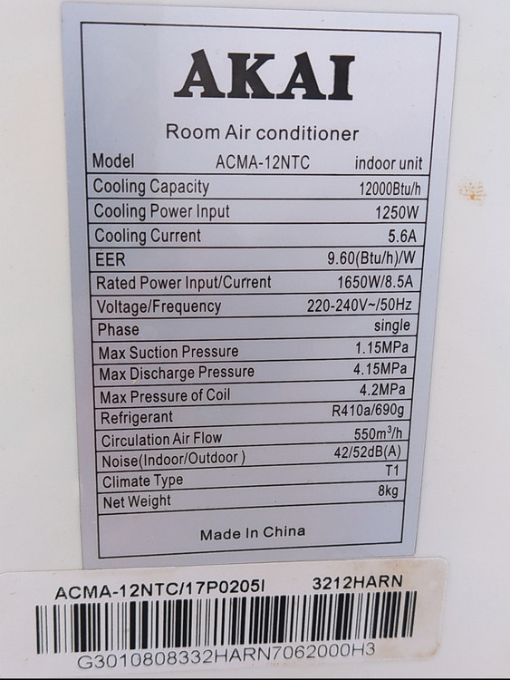 پنل تک کولر اسپلیت آکایی 12 هزار AKAI استوک