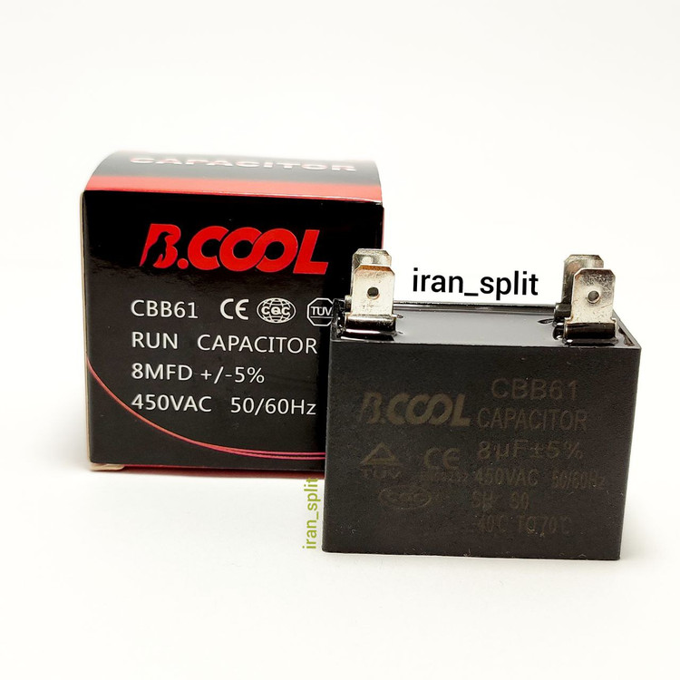 خازن کتابی 8 میکروفاراد مخصوص موتور فن - جعبه دار - فیش بزرگ