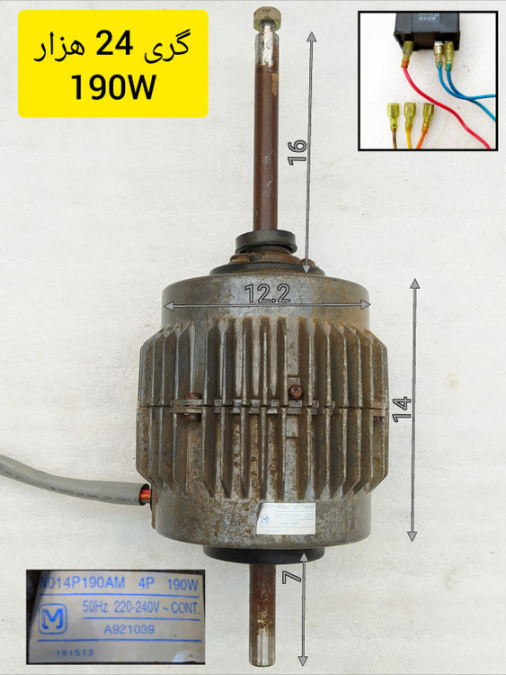 موتور فن کولر گازی پنجره ای گری 24 هزار 190 وات مدل N014P190AM استوک