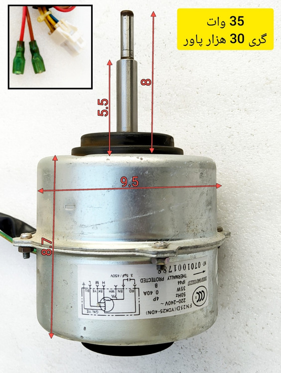 موتور فن اواپراتور کولر اسپلیت گری پاور 30 هزار 35 وات استوک ، سلامت کامل ، ارسال به تمام نقاط ایران