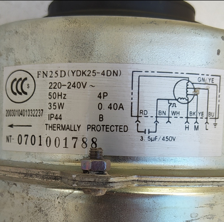 موتور فن 35 وات اواپراتور کولر اسپلیت گری پاور 30 هزار مدل FN25D (YDK25-4DN) استوک