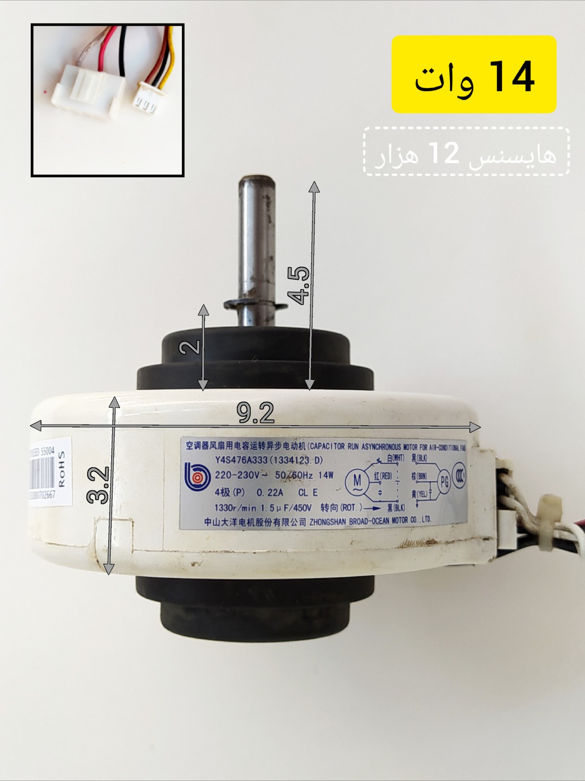 موتور فن 14 وات اواپراتور کولر اسپلیت هایسنس 12 هزار مدل Y4S476A333 استوک