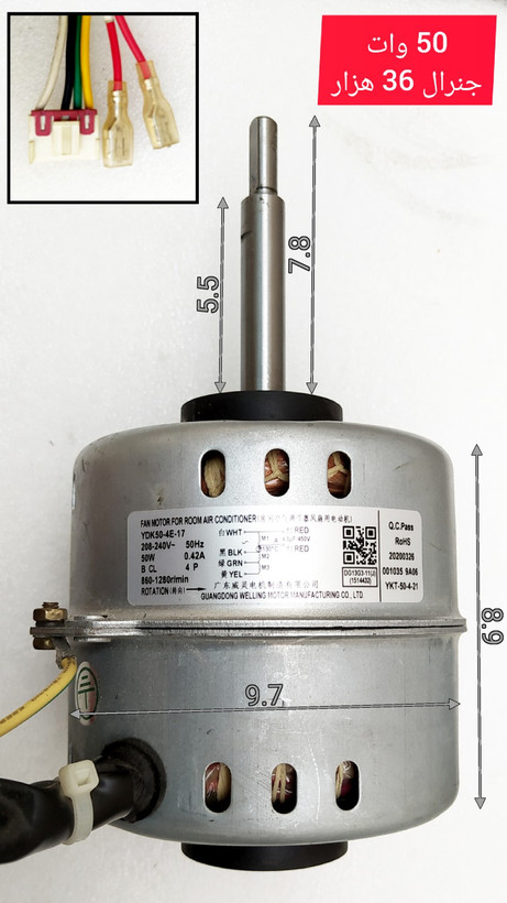 موتور فن فابریک اواپراتور کولر اسپلیت جنرال 36 هزار 50 وات ، استوک ، سلامت کامل ، ارسال به تمام نقاط ایران