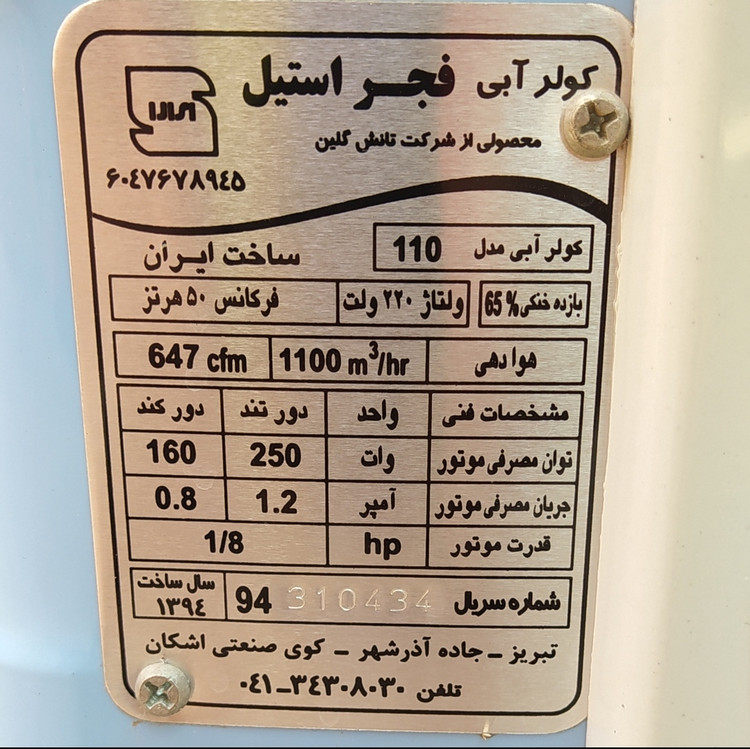 کولر آبی فجر استیل مدل ۱۱۰ استوک