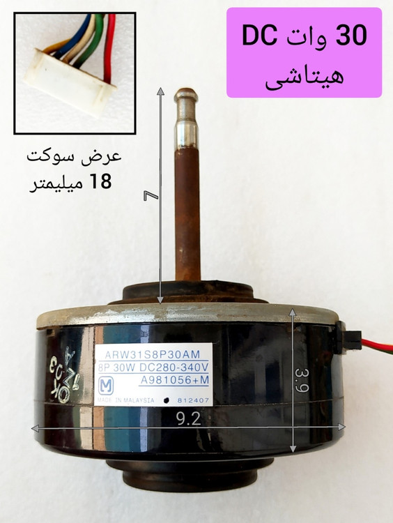 موتور فن اواپراتور کولر اسپلیت هیتاشی 30 وات DC مدل ARW31S8P30AM استوک