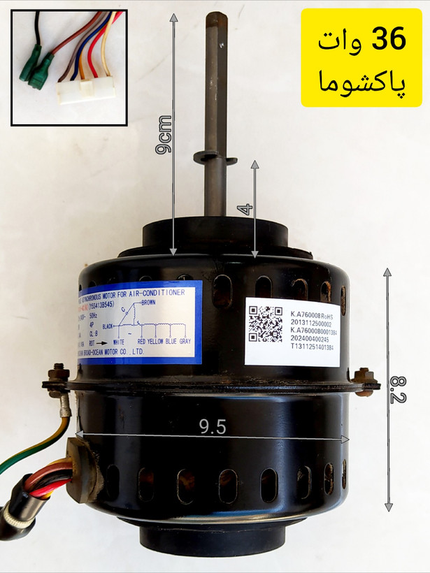 موتور فن اواپراتور کولر اسپلیت پاکشوما مدل Y5S413B54 ، استوک ، ارسال به تمام نقاط ایران