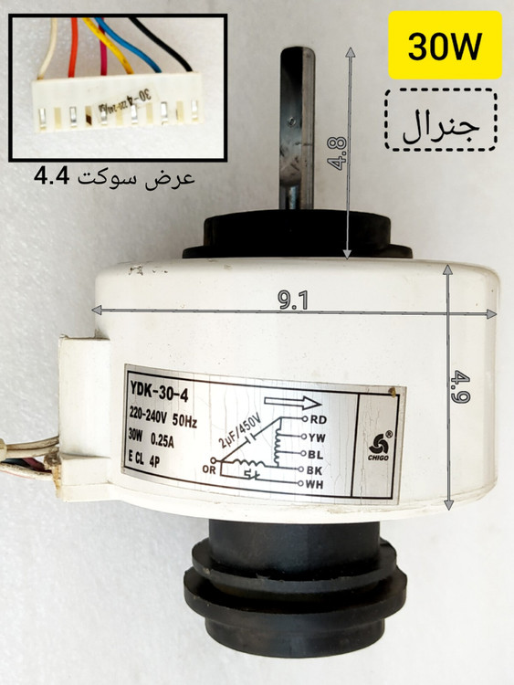 موتور فن اواپراتور کولر گازی اسپلیت 30 وات جنرال ، استوک ، ارسال به تمام نقاط ایران
