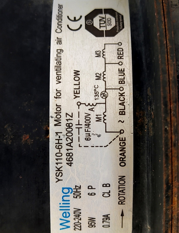 موتور فن کولر گازی پنجره ای الجی 95 وات مدل YSK110-6H-1 استوک