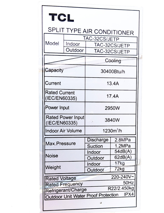 پنل کولر گازی اسپلیت 30 هزار TCL تی سی ال طرح جدید مدل TAC-32CS/JETP استوک