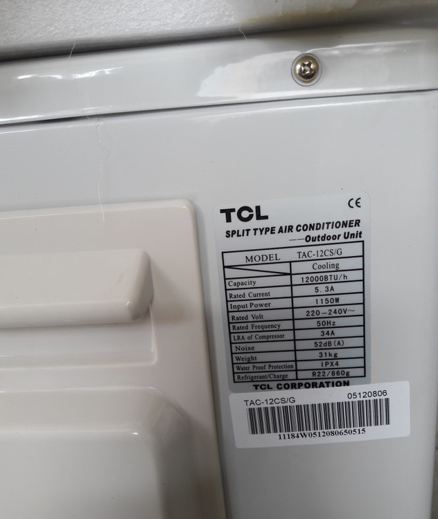 کولر گازی اسپلیت 12 هزار تی سی ال با پنج سال ضمانت مدل TAC-12CS/G