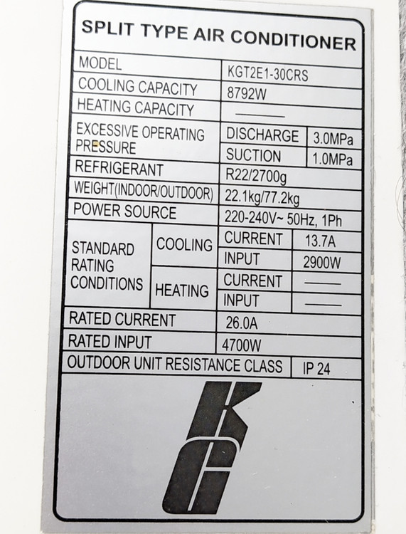 قاب پنل کولر گازی اسپلیت KG کی جی 30 هزار مدل KGT2E1-30CRS طول 125 سانت استوک