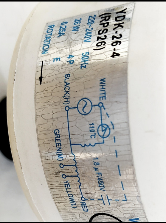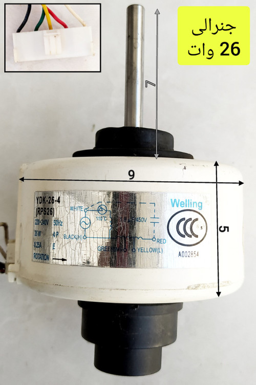 موتور فن اواپراتور کولر گازی اسپلیت جنرال 26 وات مدل YDK-26-4 مدل RPS26 استوک اصلی