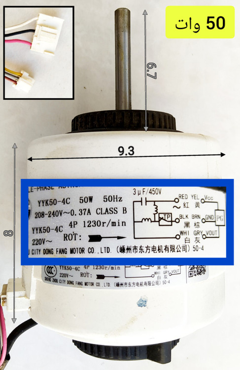 موتور فن اواپراتور کولر گازی اسپلیت 50 وات مدل YYK50-4C استوک اصلی