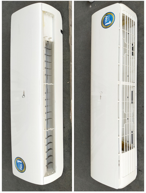قاب پنل فابریک و اصلی کولر اسپلیت Mission-36C3 مدیا میشن 36 هزار ، طول پنل 132 سانت ، بدون تیغه دمپر ، سفید و مرتب ، همراه با درپوش نگهدارنده موتور فن اواپراتور ، استوک ، ارسال به تمام نقاط ایران