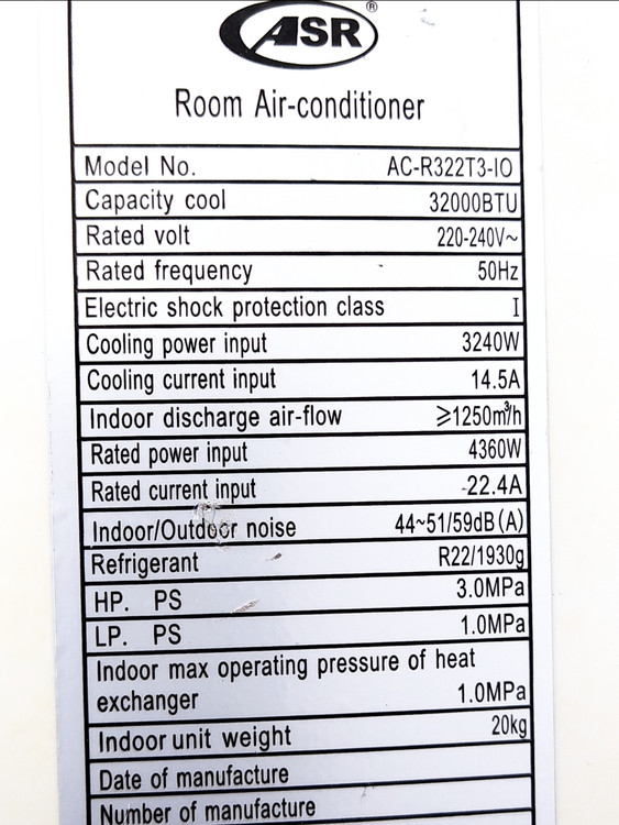 قاب پنل کولر گازی اسپلیت ASR آ اس آر 32 هزار مدل AC-R322T3-IO استوک