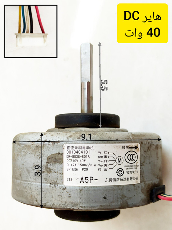 موتور فن اواپراتور کولر گازی اسپلیت هایر 24 هزار DC دی سی 40 وات 310 ولت ، سلامت کامل ، استوک ، ارسال به تمام نقاط ایران