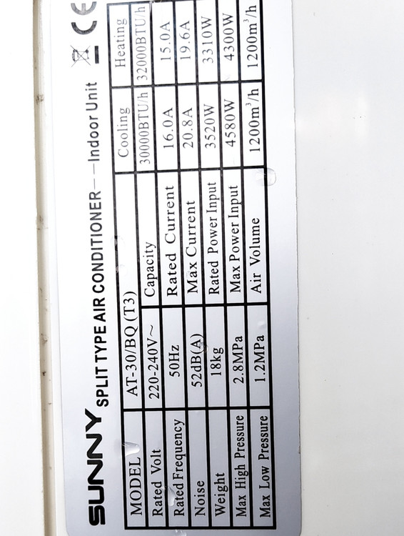 قاب پنل کولر گازی اسپلیت SUNNY سانی 30 هزار مدل AT-30/BQ(T3) استوک