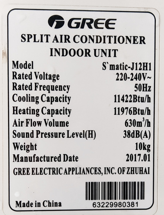 قاب پنل کولر گازی اسپلیت GREE گری 12 هزار اسماتیک مدل S' MATIC-J12H1 استوک