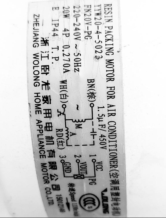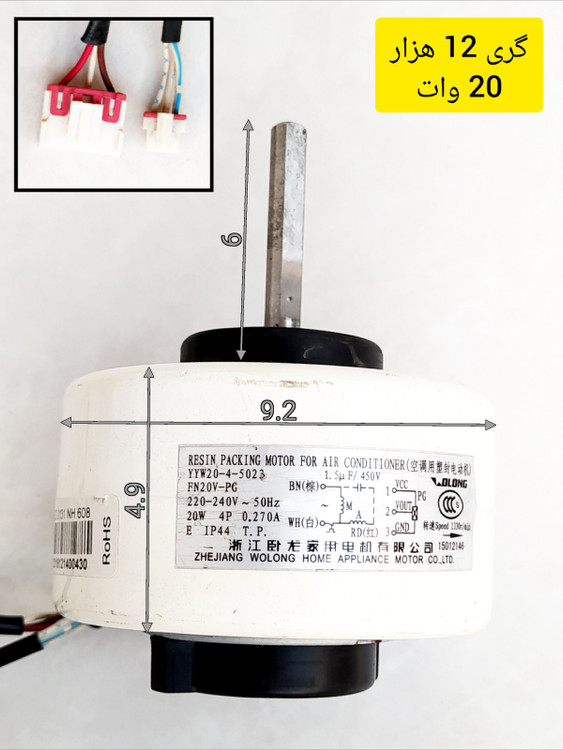 موتور فن اواپراتور کولر گازی اسپلیت گری 20 وات مدل YYW20-4-503 مدل FN20V-PG استوک