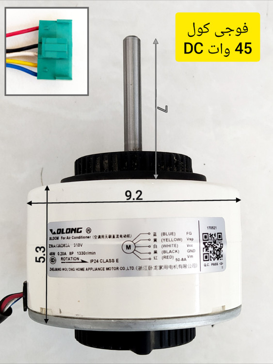 موتور فن اواپراتور کولر گازی اسپلیت 30 هزار فوجی کول FUJI COOL دی سی 45 وات DC ، سلامت کامل ، استوک ، ارسال به تمام نقاط ایران