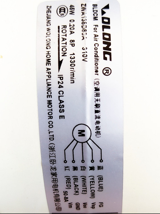 موتور فن اواپراتور کولر گازی اسپلیت 45 وات BLDC مدل ZWA138D80A استوک