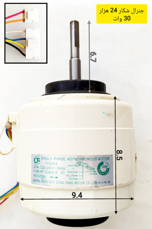 موتور فن اواپراتور کولر گازی اسپلیت جنرال شکار 24 هزار 30 وات مدل YYS30-4 استوک اصلی و فابریک