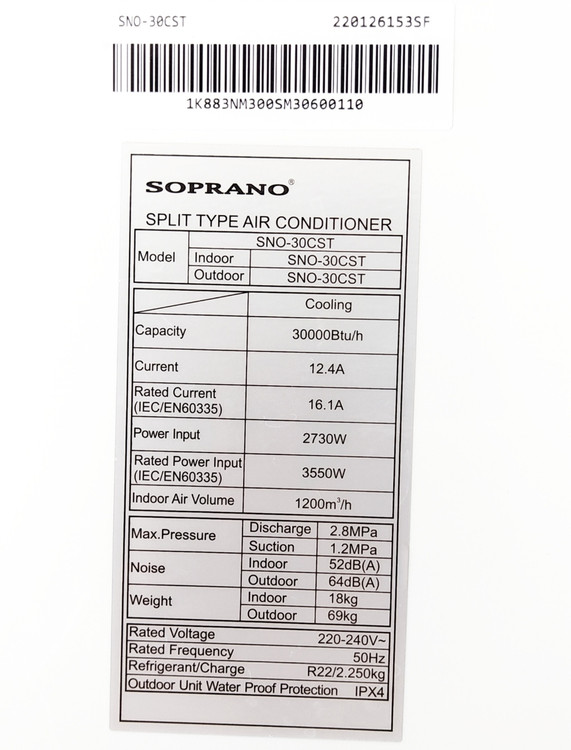 قاب پنل کولر گازی اسپلیت سوپرانو 30 هزار مدل SNO-30CST استوک
