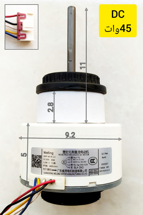 موتور فن اواپراتور کولر گازی اسپلیت سوپرانو 30 هزار 45 وات دی سی DC310V مدل ZKFP-45-8-111 استوک اصلی سلامت کامل ، استوک ، ارسال به تمام نقاط ایران