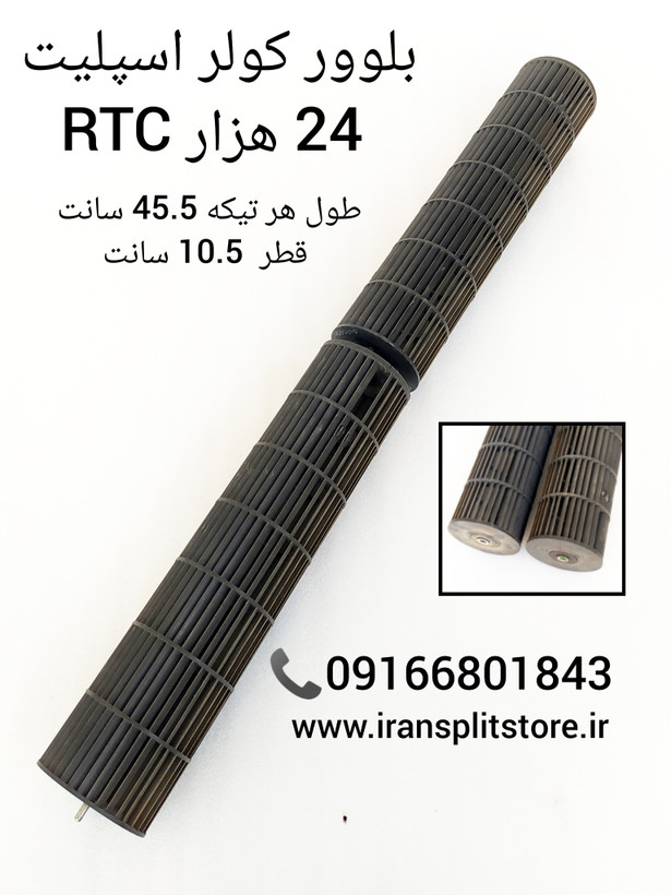 بلوور کولر اسپلیت ار تی سی 24 هزار ، طول هر قسمت 45.8 سانتیمتر ، قطر بلوور 10.5 سانتیمتر